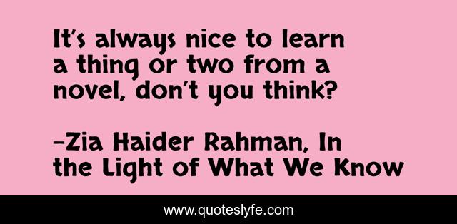 This page presents the quote "It’s always nice to learn a thing or two from a novel, don’t you think?". Author of this quote is Zia Haider Rahman, In the Light of What We Know. .