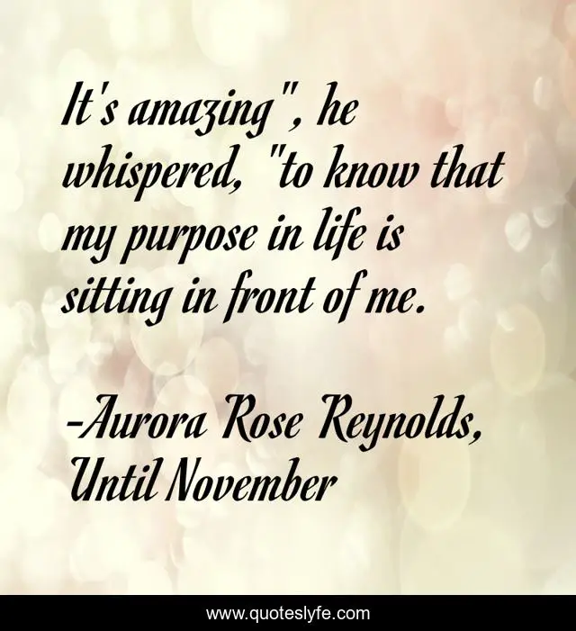This page presents the quote "It's amazing", he whispered, "to know that my purpose in life is sitting in front of me.". Author of this quote is Aurora Rose Reynolds, Until November. This quote is about cute, amazing, sweet,.