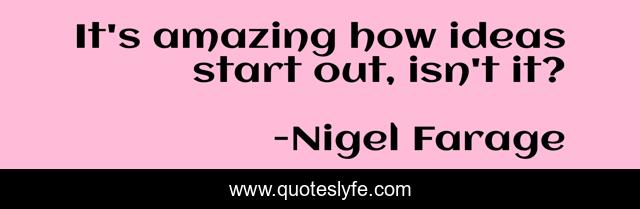 This page presents the quote "It's amazing how ideas start out, isn't it?". Author of this quote is Nigel Farage. This quote is about start, ideas, out,.
