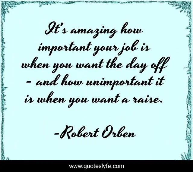 This page presents the quote "It's amazing how important your job is when you want the day off - and how unimportant it is when you want a raise.". Author of this quote is Robert Orben. This quote is about professions, work,.