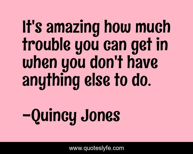 This page presents the quote "It's amazing how much trouble you can get in when you don't have anything else to do.". Author of this quote is Quincy Jones. This quote is about trouble, anything,.