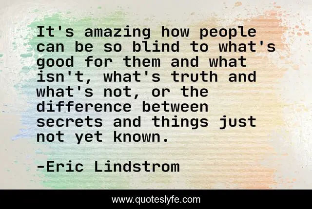 This page presents the quote "It's amazing how people can be so blind to what's good for them and what isn't, what's truth and what's not, or the difference between secrets and things just not yet known.". Author of this quote is Eric Lindstrom. This quote is about human-nature, contemporary, wisdom,.
