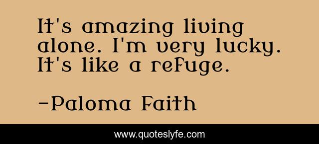 This page presents the quote "It's amazing living alone. I'm very lucky. It's like a refuge.". Author of this quote is Paloma Faith. This quote is about alone, living, lucky,.