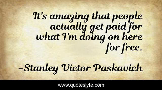 This page presents the quote "It's amazing that people actually get paid for what I'm doing on here for free.". Author of this quote is Stanley Victor Paskavich. .