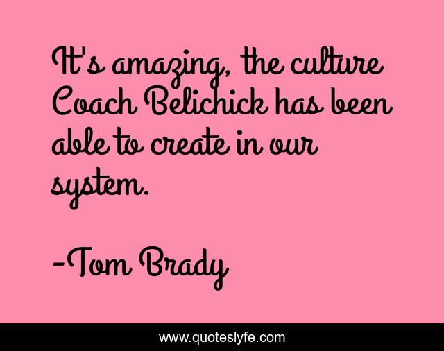 This page presents the quote "It's amazing, the culture Coach Belichick has been able to create in our system.". Author of this quote is Tom Brady. This quote is about culture, create, system,.
