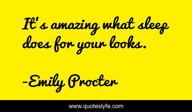 This page presents the quote "It's amazing what sleep does for your looks.". Author of this quote is Emily Procter. This quote is about amazing, sleep, looks,.