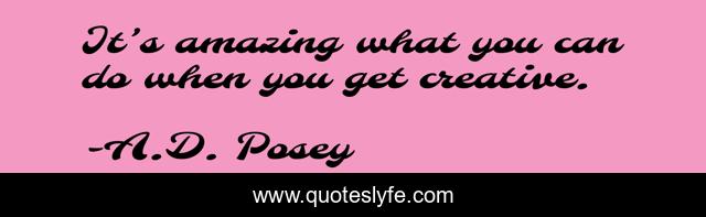 This page presents the quote "It’s amazing what you can do when you get creative.". Author of this quote is A.D. Posey. This quote is about story, ad-posey, storytelling, storytellers, creative, write, amazing, writers, stories,.