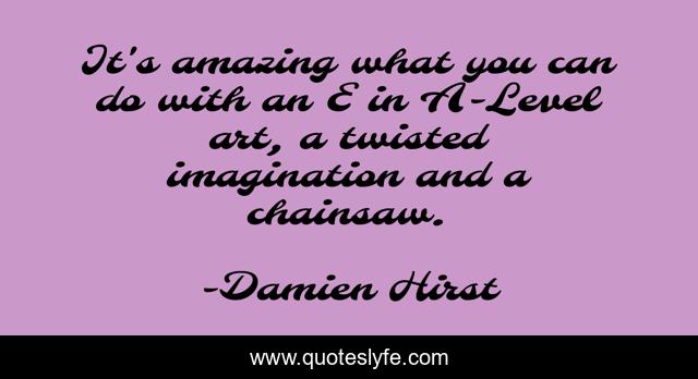 This page presents the quote "It's amazing what you can do with an E in A-Level art, a twisted imagination and a chainsaw.". Author of this quote is Damien Hirst. This quote is about amazing, art,.