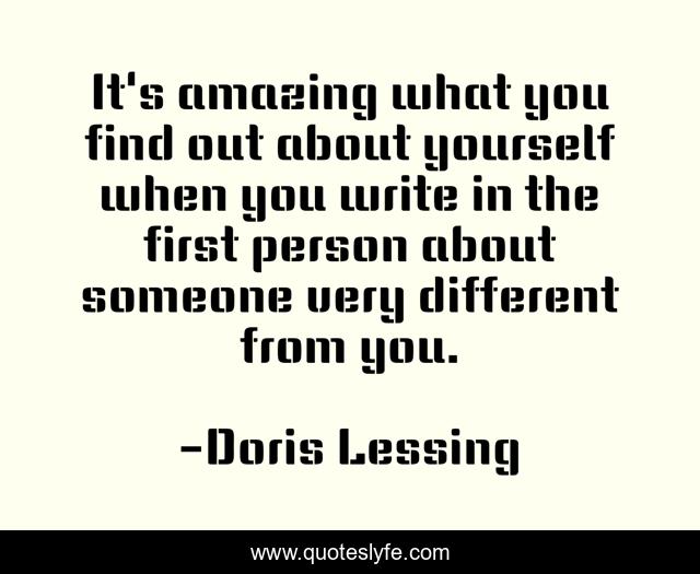 This page presents the quote "It's amazing what you find out about yourself when you write in the first person about someone very different from you.". Author of this quote is Doris Lessing. .