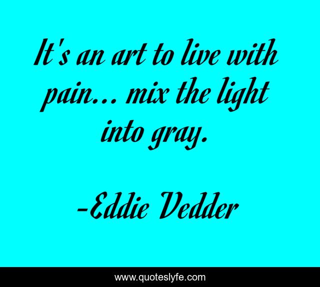 This page presents the quote "It's an art to live with pain... mix the light into gray.". Author of this quote is Eddie Vedder. This quote is about light, live, pain,.