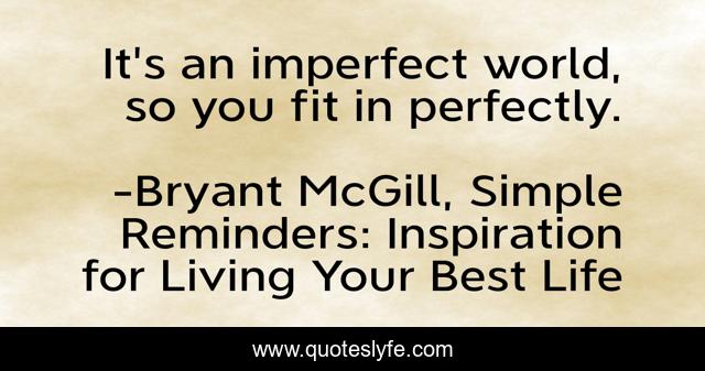 "Bryant McGill, Simple Reminders: Inspiration for Living Your Best Life Quotes." Quoteslyfe.com, 2025. Fri. 05 Dec. 2025. <https://www.quoteslyfe.com/quote/It-s-an-imperfect-world-so-you-198665>.