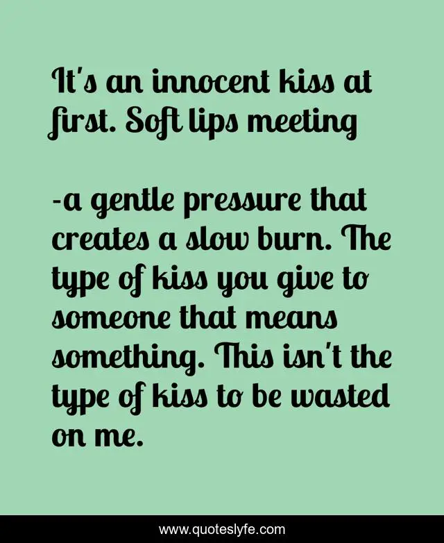 "a gentle pressure that creates a slow burn. The type of kiss you give to someone that means something. This isn't the type of kiss to be wasted on me. Quotes." Quoteslyfe.com, 2025. Fri. 05 Dec. 2025. <https://www.quoteslyfe.com/quote/It-s-an-innocent-kiss-at-first-197037>.