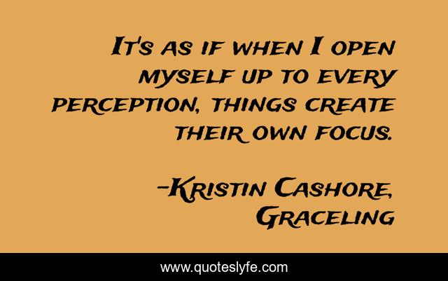 This page presents the quote "It's as if when I open myself up to every perception, things create their own focus.". Author of this quote is Kristin Cashore, Graceling. This quote is about perception, opening-up, focus,.