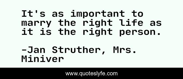 This page presents the quote "It's as important to marry the right life as it is the right person.". Author of this quote is Jan Struther, Mrs. Miniver. .