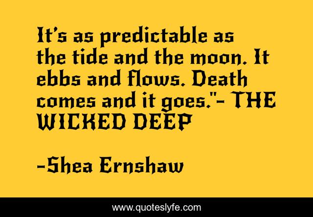 This page presents the quote "It’s as predictable as the tide and the moon. It ebbs and flows. Death comes and it goes."- THE WICKED DEEP". Author of this quote is Shea Ernshaw. This quote is about ya, magical-realism,.