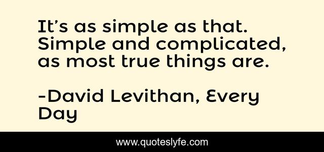 This page presents the quote "It’s as simple as that. Simple and complicated, as most true things are.". Author of this quote is David Levithan, Every Day. This quote is about simplicity, truth,.
