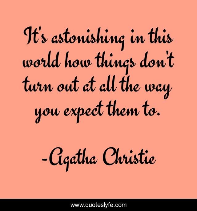 This page presents the quote "It's astonishing in this world how things don't turn out at all the way you expect them to.". Author of this quote is Agatha Christie. .
