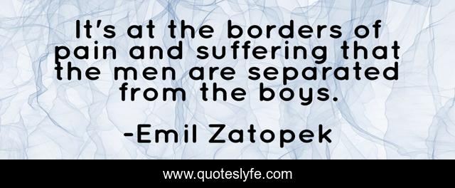 This page presents the quote "It's at the borders of pain and suffering that the men are separated from the boys.". Author of this quote is Emil Zatopek. This quote is about suffering, pain, borders,.