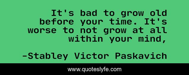 This page presents the quote "It's bad to grow old before your time. It's worse to not grow at all within your mind, ". Author of this quote is Stabley Victor Paskavich. .