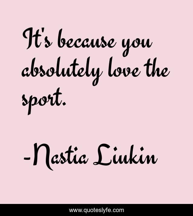 This page presents the quote "It's because you absolutely love the sport.". Author of this quote is Nastia Liukin. This quote is about sportsmanship, gymnastics, sports-inspirational, sports,.