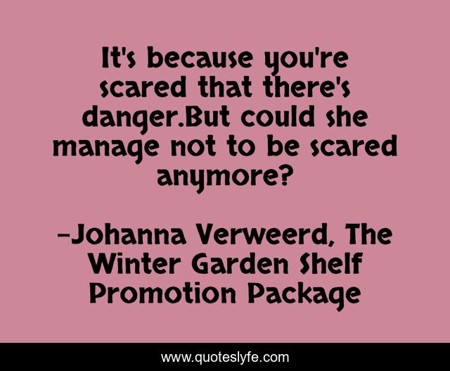 This page presents the quote "It's because you're scared that there's danger.But could she manage not to be scared anymore?". Author of this quote is Johanna Verweerd, The Winter Garden Shelf Promotion Package. .