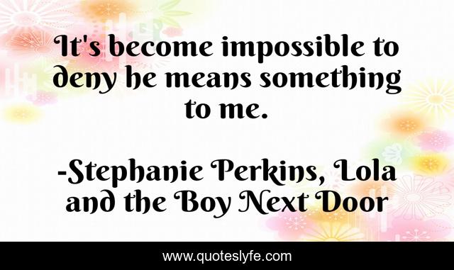 "Stephanie Perkins, Lola and the Boy Next Door Quotes." Quoteslyfe.com, 2025. Mon. 08 Dec. 2025. <https://www.quoteslyfe.com/quote/It-s-become-impossible-to-deny-he-1506>.