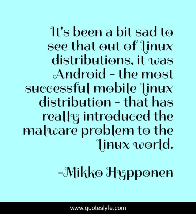 This page presents the quote "It's been a bit sad to see that out of Linux distributions, it was Android - the most successful mobile Linux distribution - that has really introduced the malware problem to the Linux world.". Author of this quote is Mikko Hypponen. This quote is about successful, world, problem,.