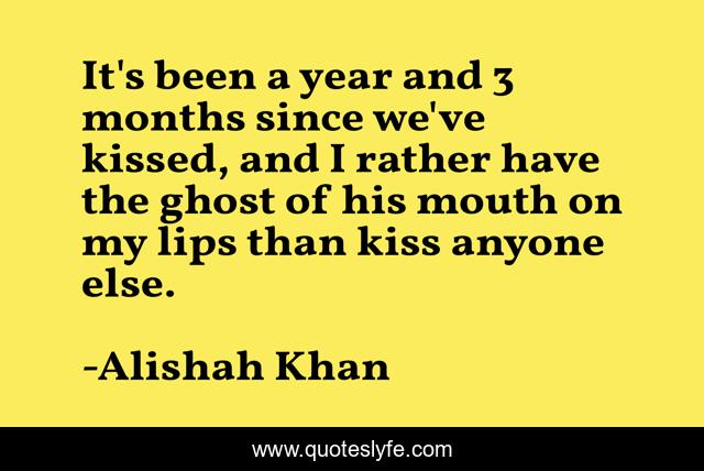 This page presents the quote "It's been a year and 3 months since we've kissed, and I rather have the ghost of his mouth on my lips than kiss anyone else.". Author of this quote is Alishah Khan. This quote is about love, sad, quotes, rantings, long-distance-relationships, affection,.