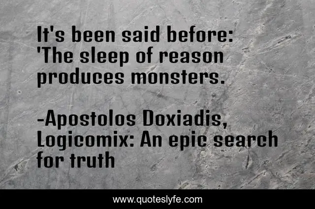 This page presents the quote "It's been said before: 'The sleep of reason produces monsters.". Author of this quote is Apostolos Doxiadis, Logicomix: An epic search for truth. This quote is about reason, logic,.