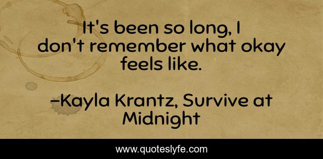 This page presents the quote "It's been so long, I don't remember what okay feels like.". Author of this quote is Kayla Krantz, Survive at Midnight. This quote is about okay, abuse, pain, survivor, quotes,.