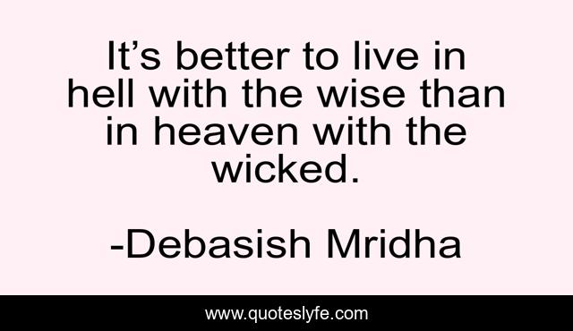 This page presents the quote "It’s better to live in hell with the wise than in heaven with the wicked.". Author of this quote is Debasish Mridha. This quote is about life, love, knowledge, inspirational, intelligence, philosophy, wisdom, quotes, affection,.
