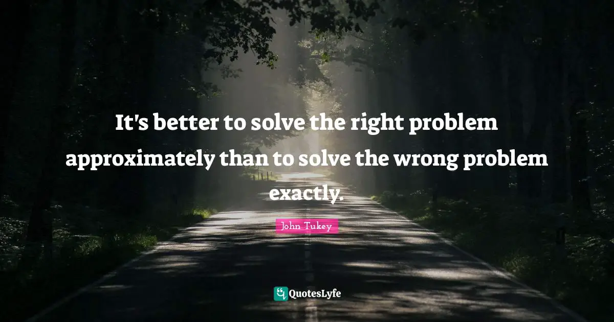 This page presents the quote "It's better to solve the right problem approximately than to solve the wrong problem exactly.". Author of this quote is John Tukey. This quote is about problem, solve, management, risk,.