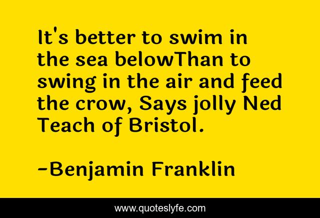 This page presents the quote "It's better to swim in the sea belowThan to swing in the air and feed the crow, Says jolly Ned Teach of Bristol.". Author of this quote is Benjamin Franklin. This quote is about pirates, blackbeard, poetry, hanging,.