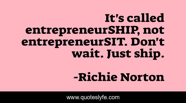 This page presents the quote "It's called entrepreneurSHIP, not entrepreneurSIT. Don't wait. Just ship.". Author of this quote is Richie Norton. This quote is about confidence, self-mastery, mindful, marketing, work, success, self-help, entrepreneur, innovation,.