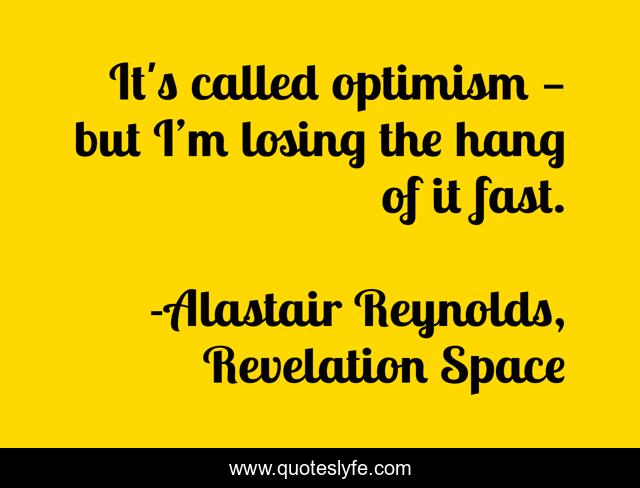 This page presents the quote "It's called optimism — but I’m losing the hang of it fast.". Author of this quote is Alastair Reynolds, Revelation Space. .
