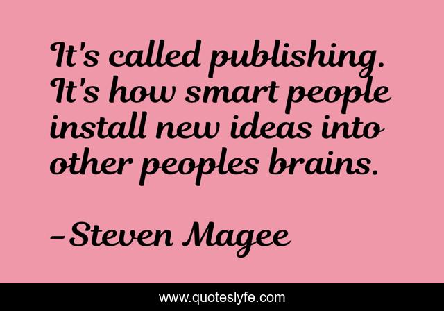 This page presents the quote "It's called publishing. It's how smart people install new ideas into other peoples brains.". Author of this quote is Steven Magee. This quote is about publishing, people, brains, ideas, new, smart,.