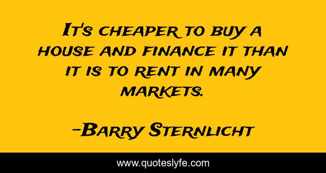 This page presents the quote "It's cheaper to buy a house and finance it than it is to rent in many markets.". Author of this quote is Barry Sternlicht. This quote is about house, buy, rent,.