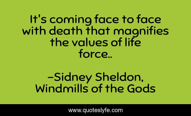 This page presents the quote "It's coming face to face with death that magnifies the values of life force..". Author of this quote is Sidney Sheldon, Windmills of the Gods. .