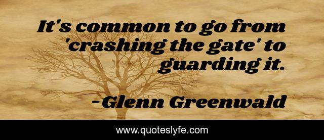 This page presents the quote "It's common to go from 'crashing the gate' to guarding it.". Author of this quote is Glenn Greenwald. This quote is about dissent, twitter, loyalty, barack-obama, united-states, politics, liberalism, 2012,.
