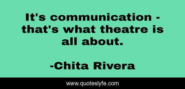 This page presents the quote "It's communication - that's what theatre is all about.". Author of this quote is Chita Rivera. .