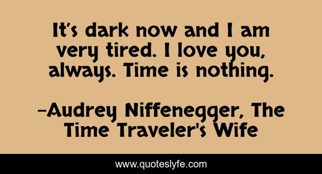 This page presents the quote "It’s dark now and I am very tired. I love you, always. Time is nothing.". Author of this quote is Audrey Niffenegger, The Time Traveler's Wife. This quote is about love, affection, time,.