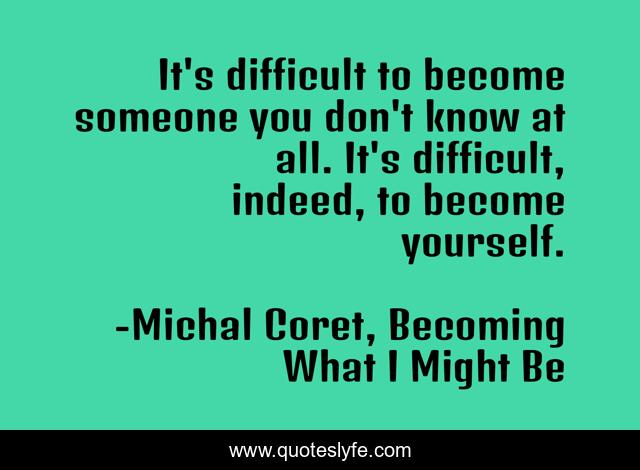 "Michal Coret, Becoming What I Might Be Quotes." Quoteslyfe.com, 2025. Sat. 06 Dec. 2025. <https://www.quoteslyfe.com/quote/It-s-difficult-to-become-someone-you-141643>.