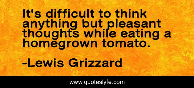 This page presents the quote "It's difficult to think anything but pleasant thoughts while eating a homegrown tomato.". Author of this quote is Lewis Grizzard. This quote is about eating, think, thoughts,.