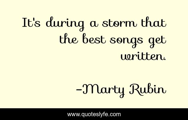 This page presents the quote "It's during a storm that the best songs get written.". Author of this quote is Marty Rubin. This quote is about songs, adversity, writing,.