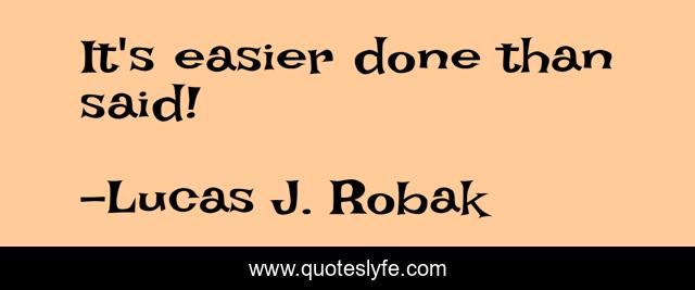 "Lucas J. Robak Quotes." Quoteslyfe.com, 2025. Sat. 06 Dec. 2025. <https://www.quoteslyfe.com/quote/It-s-easier-done-than-said-83284>.
