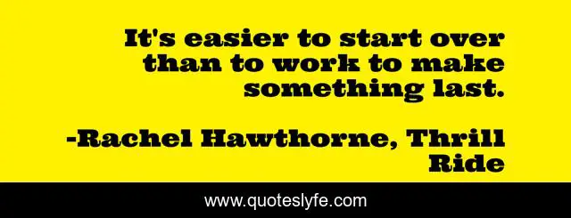 This page presents the quote "It's easier to start over than to work to make something last.". Author of this quote is Rachel Hawthorne, Thrill Ride. .