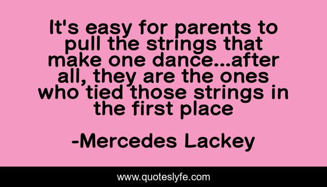 This page presents the quote "It's easy for parents to pull the strings that make one dance...after all, they are the ones who tied those strings in the first place". Author of this quote is Mercedes Lackey. This quote is about parents-and-children, parents,.