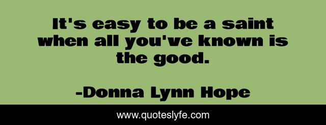 This page presents the quote "It's easy to be a saint when all you've known is the good.". Author of this quote is Donna Lynn Hope. This quote is about god, good, faithfulness, easy, saint,.