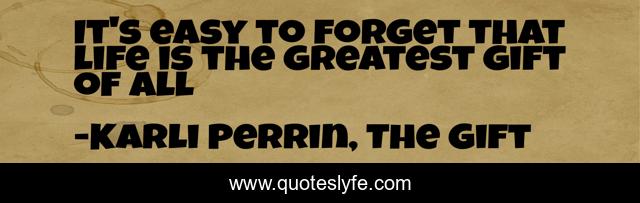 "Karli Perrin, The Gift Quotes." Quoteslyfe.com, 2025. Sat. 06 Dec. 2025. <https://www.quoteslyfe.com/quote/It-s-easy-to-forget-that-life-220639>.
