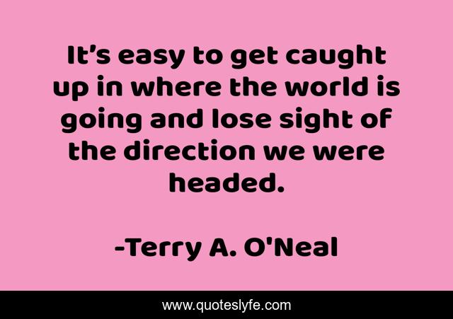 This page presents the quote "It’s easy to get caught up in where the world is going and lose sight of the direction we were headed.". Author of this quote is Terry A. O'Neal. This quote is about quotes, quotations, o-neal, terry,.
